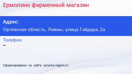 Ермолино, фирменный магазин по адресу Орловская область, Ливны, улица Гайдара, 2а в дальнейшем Организация, размещена в следующих категориях: