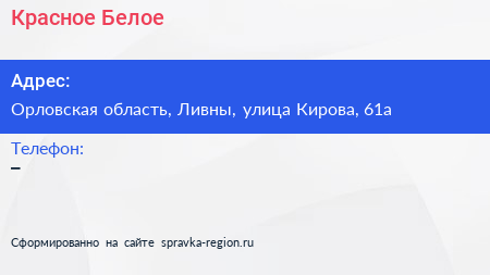 Красное & Белое по адресу Орловская область, Ливны, улица Кирова, 61а в дальнейшем Организация, размещена в следующих категориях: