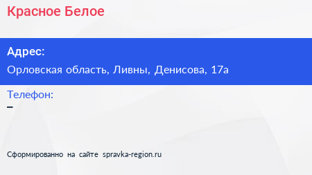 Красное & Белое по адресу Орловская область, Ливны, Денисова, 17а в дальнейшем Организация, размещена в следующих категориях: