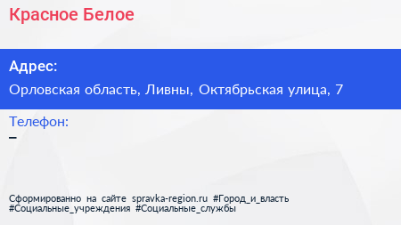 Красное & Белое по адресу Орловская область, Ливны, Октябрьская улица, 7 в дальнейшем Организация, размещена в следующих категориях: