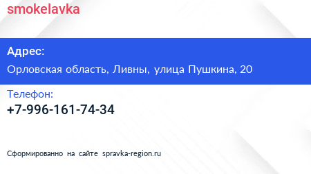 smokelavka по адресу Орловская область, Ливны, улица Пушкина, 20 в дальнейшем Организация, размещена в следующих категориях: