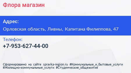 Флора, магазин по адресу Орловская область, Ливны, Капитана Филиппова, 47 в дальнейшем Организация, размещена в следующих категориях: