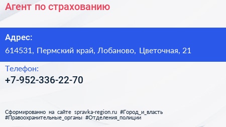 Агент по страхованию по адресу 614531, Пермский край, Лобаново, Цветочная, 21 в дальнейшем Организация, размещена в следующих категориях: