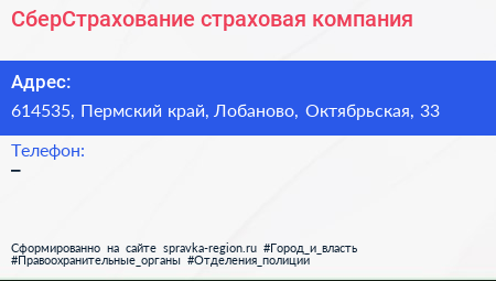 СберСтрахование, страховая компания по адресу 614535, Пермский край, Лобаново, Октябрьская, 33 в дальнейшем Организация, размещена в следующих категориях:
