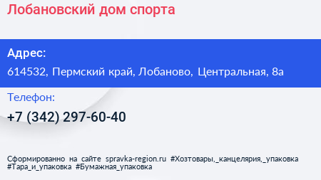 Лобановский дом спорта по адресу 614532, Пермский край, Лобаново, Центральная, 8а в дальнейшем Организация, размещена в следующих категориях: