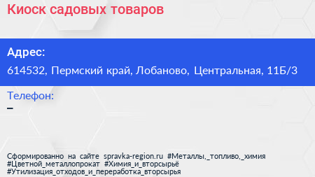 Киоск садовых товаров по адресу 614532, Пермский край, Лобаново, Центральная, 11Б/3 в дальнейшем Организация, размещена в следующих категориях:
