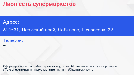 Лион, сеть супермаркетов по адресу 614531, Пермский край, Лобаново, Некрасова, 22 в дальнейшем Организация, размещена в следующих категориях: