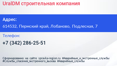 UralDM, строительная компания по адресу 614532, Пермский край, Лобаново, Подлесная, 7 в дальнейшем Организация, размещена в следующих категориях: