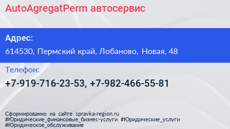AutoAgregatPerm, автосервис по адресу 614530, Пермский край, Лобаново, Новая, 48 в дальнейшем Организация, размещена в следующих категориях: