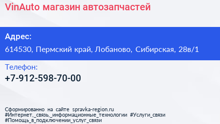 VinAuto, магазин автозапчастей по адресу 614530, Пермский край, Лобаново, Сибирская, 28в/1 в дальнейшем Организация, размещена в следующих категориях: