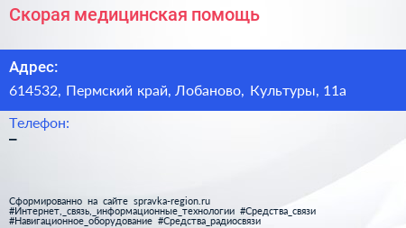 Скорая медицинская помощь по адресу 614532, Пермский край, Лобаново, Культуры, 11а в дальнейшем Организация, размещена в следующих категориях:
