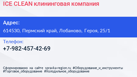 ICE CLEAN, клининговая компания по адресу 614530, Пермский край, Лобаново, Героя, 25/1 в дальнейшем Организация, размещена в следующих категориях:
