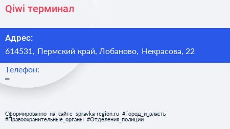 Qiwi, терминал по адресу 614531, Пермский край, Лобаново, Некрасова, 22 в дальнейшем Организация, размещена в следующих категориях: