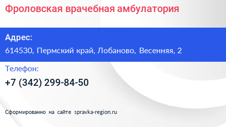 Фроловская врачебная амбулатория по адресу 614530, Пермский край, Лобаново, Весенняя, 2 в дальнейшем Организация, размещена в следующих категориях: