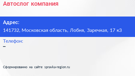 Автослог, компания по адресу 141732, Московская область, Лобня, Заречная, 17 к3 в дальнейшем Организация, размещена в следующих категориях: