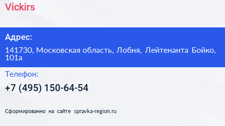 Vickirs по адресу 141730, Московская область, Лобня, Лейтенанта Бойко, 101а в дальнейшем Организация, размещена в следующих категориях: