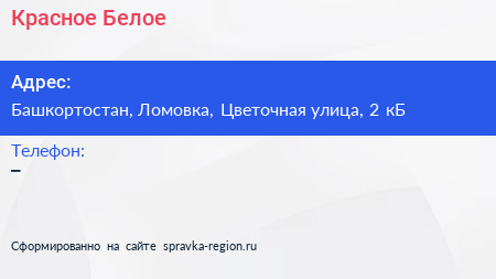 Красное & Белое по адресу Башкортостан, Ломовка, Цветочная улица, 2 кБ в дальнейшем Организация, размещена в следующих категориях: