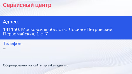 Сервисный центр по адресу 141150, Московская область, Лосино-Петровский, Первомайская, 1 ст7 в дальнейшем Организация, размещена в следующих категориях: