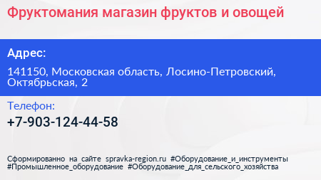 Фруктомания, магазин фруктов и овощей по адресу 141150, Московская область, Лосино-Петровский, Октябрьская, 2 в дальнейшем Организация, размещена в следующих категориях: