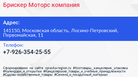 Брискер-Моторс, компания по адресу 141150, Московская область, Лосино-Петровский, Первомайская, 11 в дальнейшем Организация, размещена в следующих категориях: