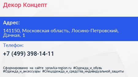 Декор Концепт по адресу 141150, Московская область, Лосино-Петровский, Дачная, 1 в дальнейшем Организация, размещена в следующих категориях: