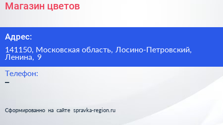 Магазин цветов по адресу 141150, Московская область, Лосино-Петровский, Ленина, 9 в дальнейшем Организация, размещена в следующих категориях: