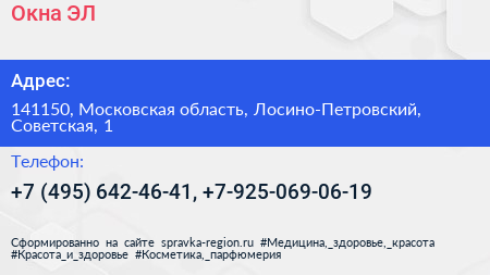Окна-ЭЛ по адресу 141150, Московская область, Лосино-Петровский, Советская, 1 в дальнейшем Организация, размещена в следующих категориях: