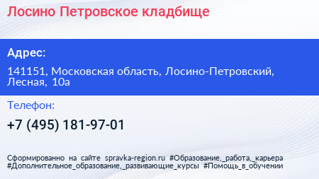 Лосино-Петровское кладбище по адресу 141151, Московская область, Лосино-Петровский, Лесная, 10а в дальнейшем Организация, размещена в следующих категориях: