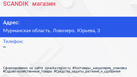 SCANDIK+, магазин по адресу Мурманская область, Ловозеро, Юрьева, 3 в дальнейшем Организация, размещена в следующих категориях: