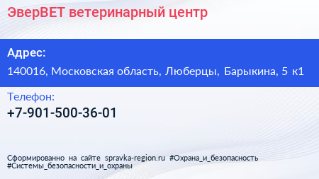 ЭверВЕТ, ветеринарный центр по адресу 140016, Московская область, Люберцы, Барыкина, 5 к1 в дальнейшем Организация, размещена в следующих категориях: