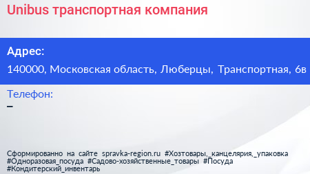 Unibus, транспортная компания по адресу 140000, Московская область, Люберцы, Транспортная, 6в в дальнейшем Организация, размещена в следующих категориях: