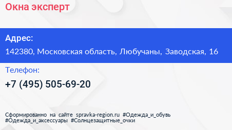 Окна эксперт по адресу 142380, Московская область, Любучаны, Заводская, 16 в дальнейшем Организация, размещена в следующих категориях: