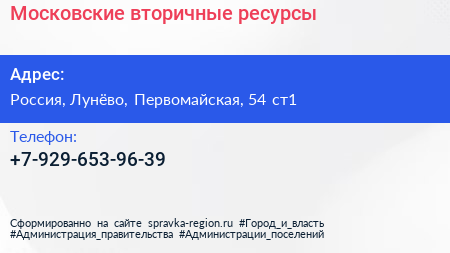 Московские вторичные ресурсы по адресу Опытный Стекольный Завод, 56, Первомайская улица, Гучковка, Сходня, Химки, городской округ Химки, Московская область, Центральный федеральный округ, 141421, Россия в дальнейшем Организация, размещена в следующих категориях: