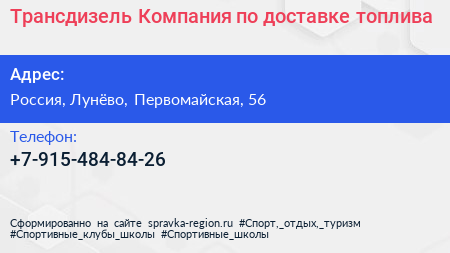Трансдизель, Компания по доставке топлива по адресу Опытный Стекольный Завод, 56, Первомайская улица, Гучковка, Сходня, Химки, городской округ Химки, Московская область, Центральный федеральный округ, 141421, Россия в дальнейшем Организация, размещена в следующих категориях: