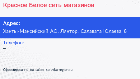 Красное & Белое, сеть магазинов по адресу Ханты-Мансийский АО, Лянтор, Салавата Юлаева, 8 в дальнейшем Организация, размещена в следующих категориях: