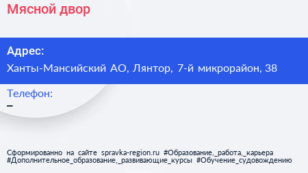 Мясной двор по адресу Ханты-Мансийский АО, Лянтор, 7-й микрорайон, 38 в дальнейшем Организация, размещена в следующих категориях: