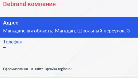 Bebrand, компания по адресу Магаданская область, Магадан, Школьный переулок, 3 в дальнейшем Организация, размещена в следующих категориях: