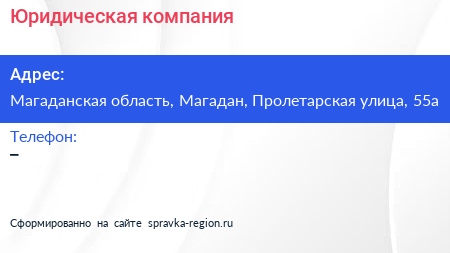 Юридическая компания по адресу Магаданская область, Магадан, Пролетарская улица, 55а в дальнейшем Организация, размещена в следующих категориях: