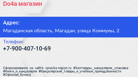 Do4a, магазин по адресу Магаданская область, Магадан, улица Коммуны, 2 в дальнейшем Организация, размещена в следующих категориях: