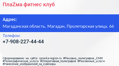 ПлаZма, фитнес-клуб по адресу Магаданская область, Магадан, Пролетарская улица, 66 в дальнейшем Организация, размещена в следующих категориях: