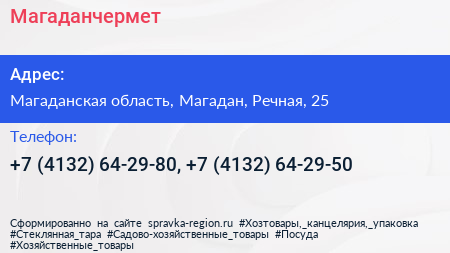 Магаданчермет по адресу Магаданская область, Магадан, Речная, 25 в дальнейшем Организация, размещена в следующих категориях:
