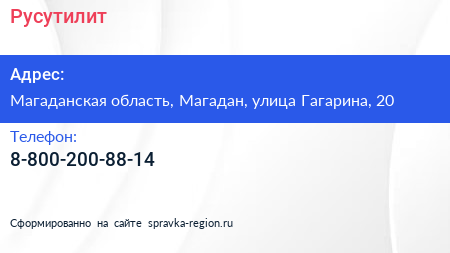 Русутилит по адресу Магаданская область, Магадан, улица Гагарина, 20 в дальнейшем Организация, размещена в следующих категориях: