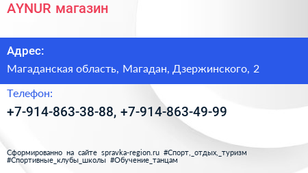 AYNUR, магазин по адресу Магаданская область, Магадан, Дзержинского, 2 в дальнейшем Организация, размещена в следующих категориях:
