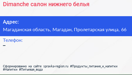Dimanche, салон нижнего белья по адресу Магаданская область, Магадан, Пролетарская улица, 66 в дальнейшем Организация, размещена в следующих категориях: