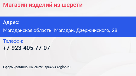 Магазин изделий из шерсти по адресу Магаданская область, Магадан, Дзержинского, 28 в дальнейшем Организация, размещена в следующих категориях: