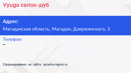 Vyuga, салон шуб по адресу Магаданская область, Магадан, Дзержинского, 3 в дальнейшем Организация, размещена в следующих категориях: