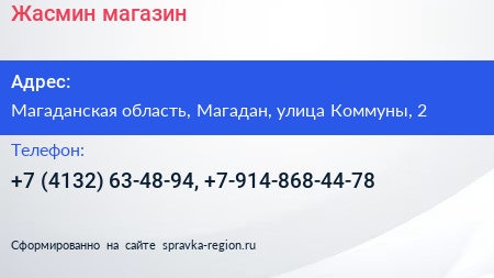 Жасмин, магазин по адресу Магаданская область, Магадан, улица Коммуны, 2 в дальнейшем Организация, размещена в следующих категориях: