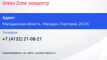 Green Zone, зооцентр по адресу Магаданская область, Магадан, Портовая, 25/21 в дальнейшем Организация, размещена в следующих категориях: