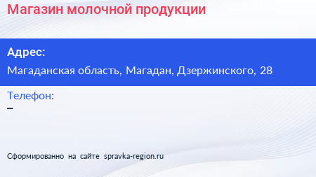 Магазин молочной продукции по адресу Магаданская область, Магадан, Дзержинского, 28 в дальнейшем Организация, размещена в следующих категориях: