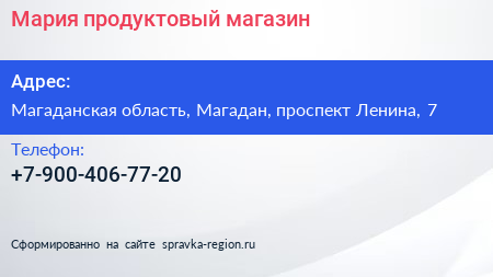 Мария, продуктовый магазин по адресу Магаданская область, Магадан, проспект Ленина, 7 в дальнейшем Организация, размещена в следующих категориях: